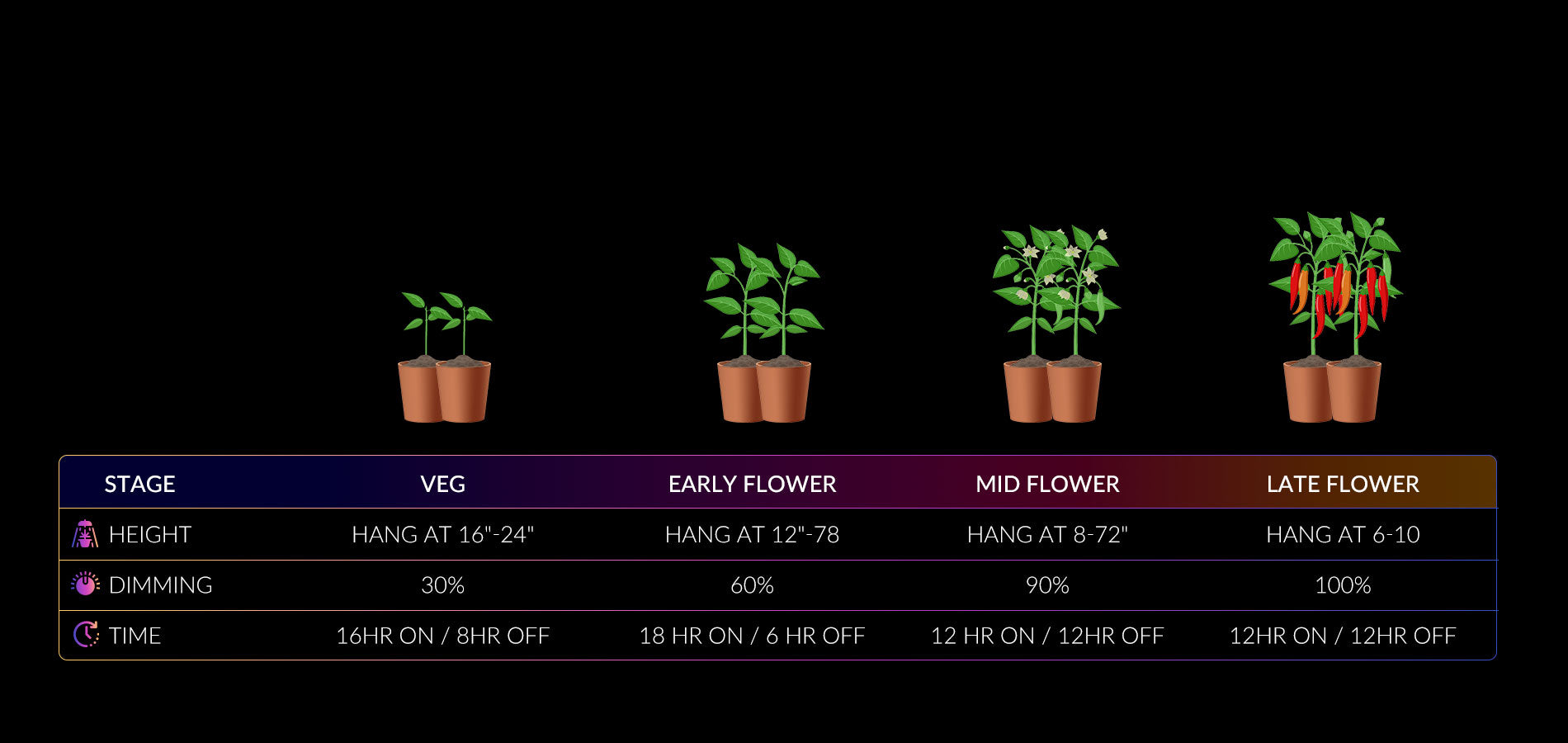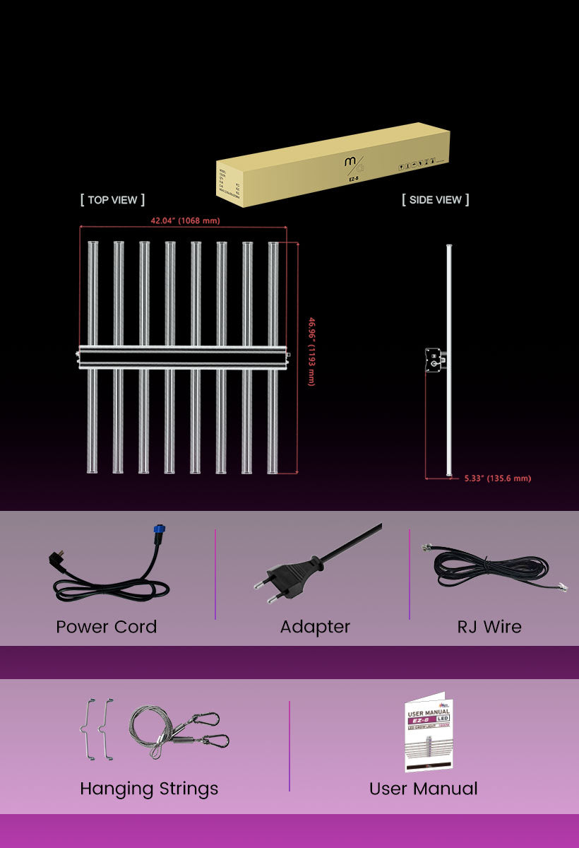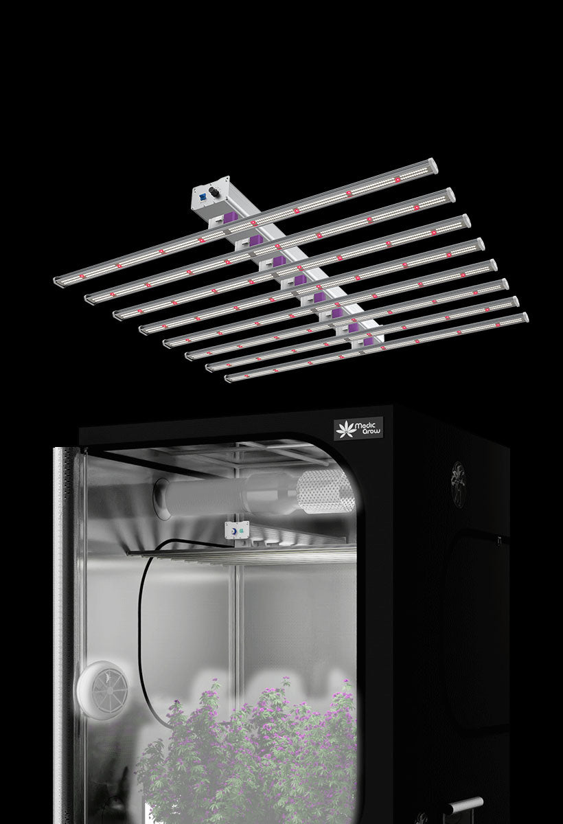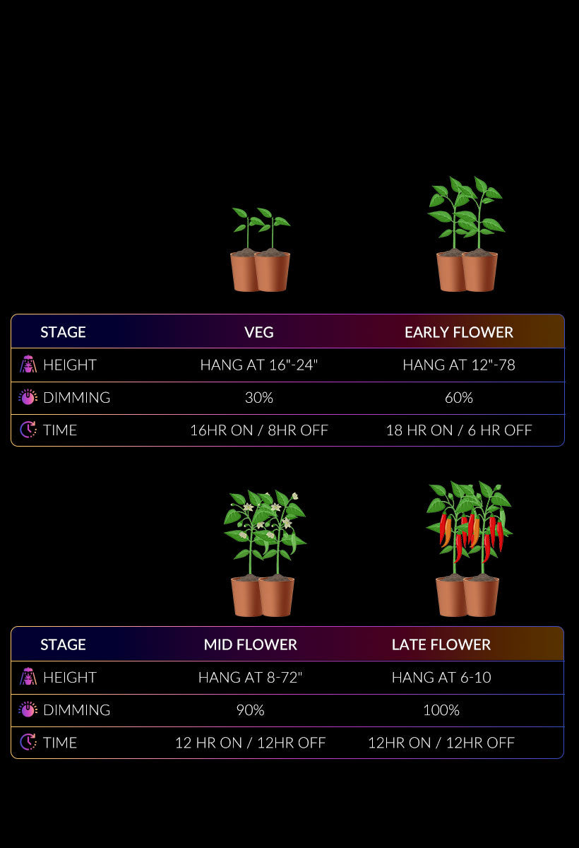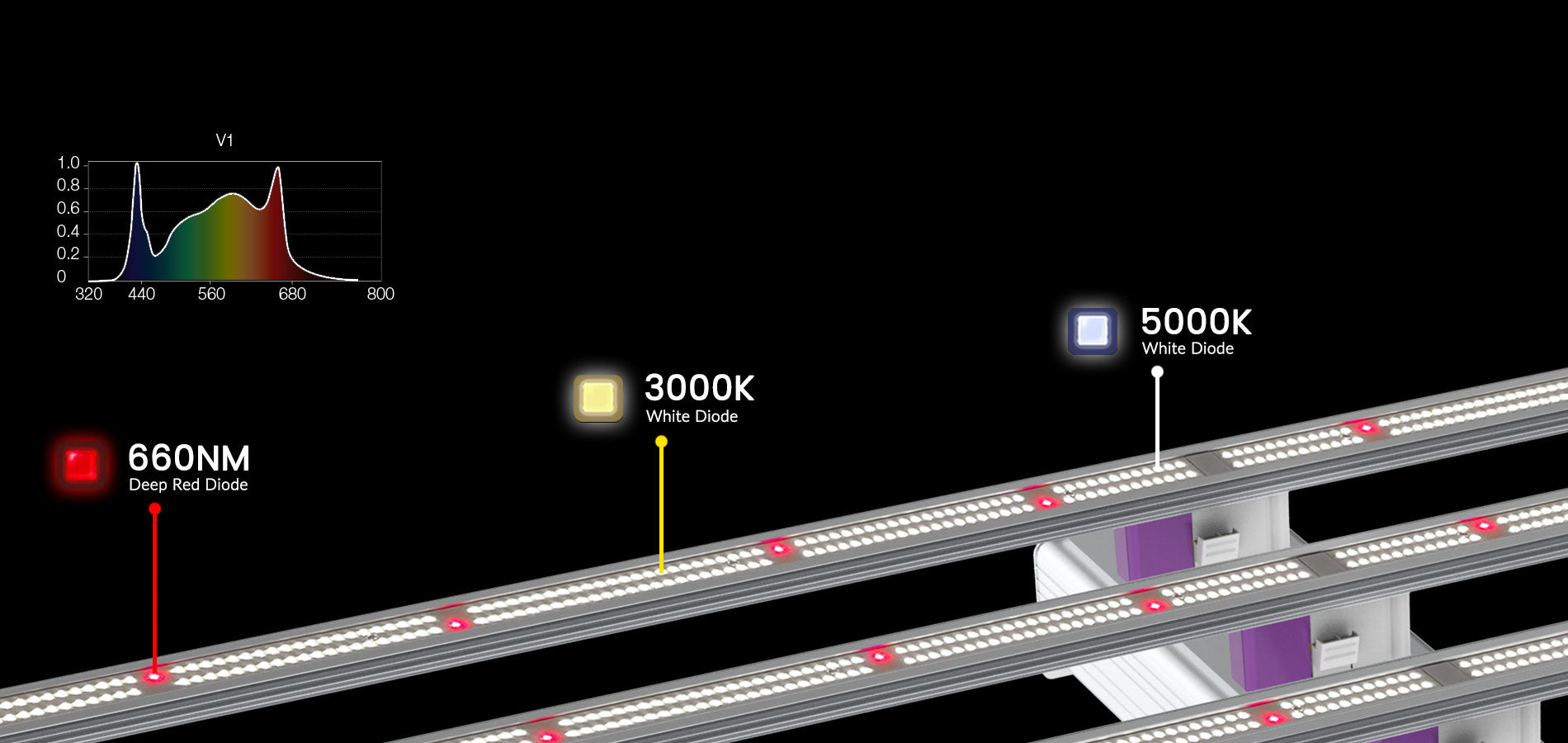 Dieses umfassende Spektrum versorgt die Pflanzen in den verschiedenen Wachstumsstadien mit der gesamten Lichtenergie, die sie benötigen, und fördert so die allgemeine Pflanzengesundheit und ein kräftiges Wachstum .