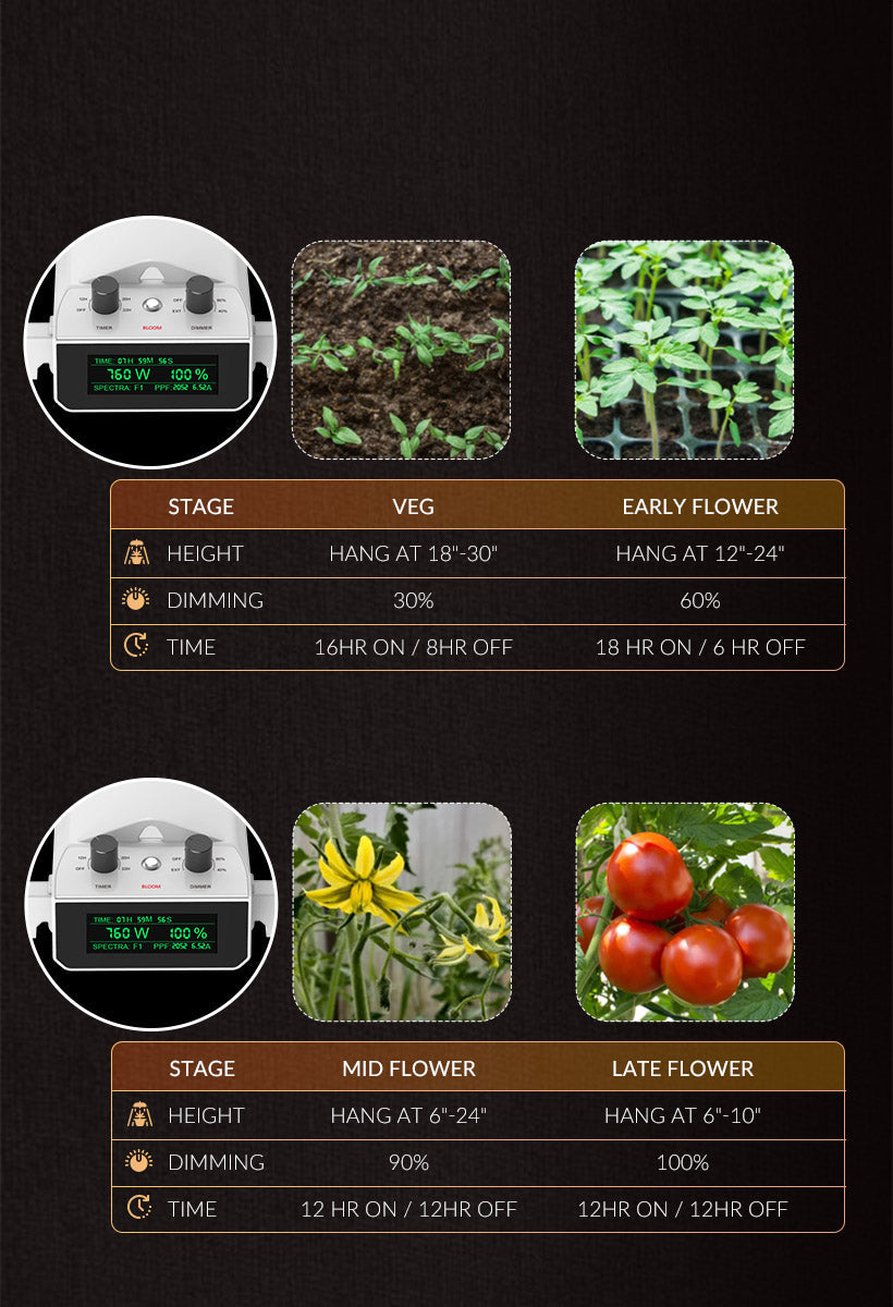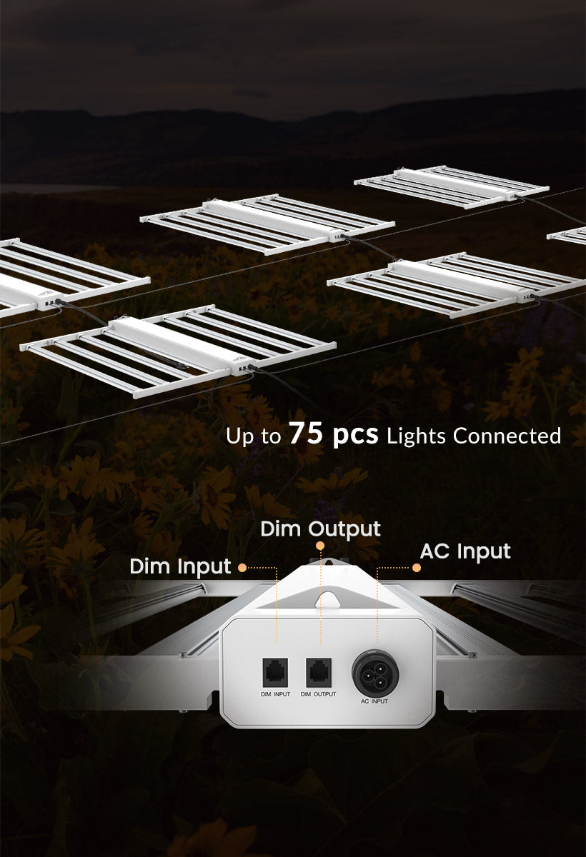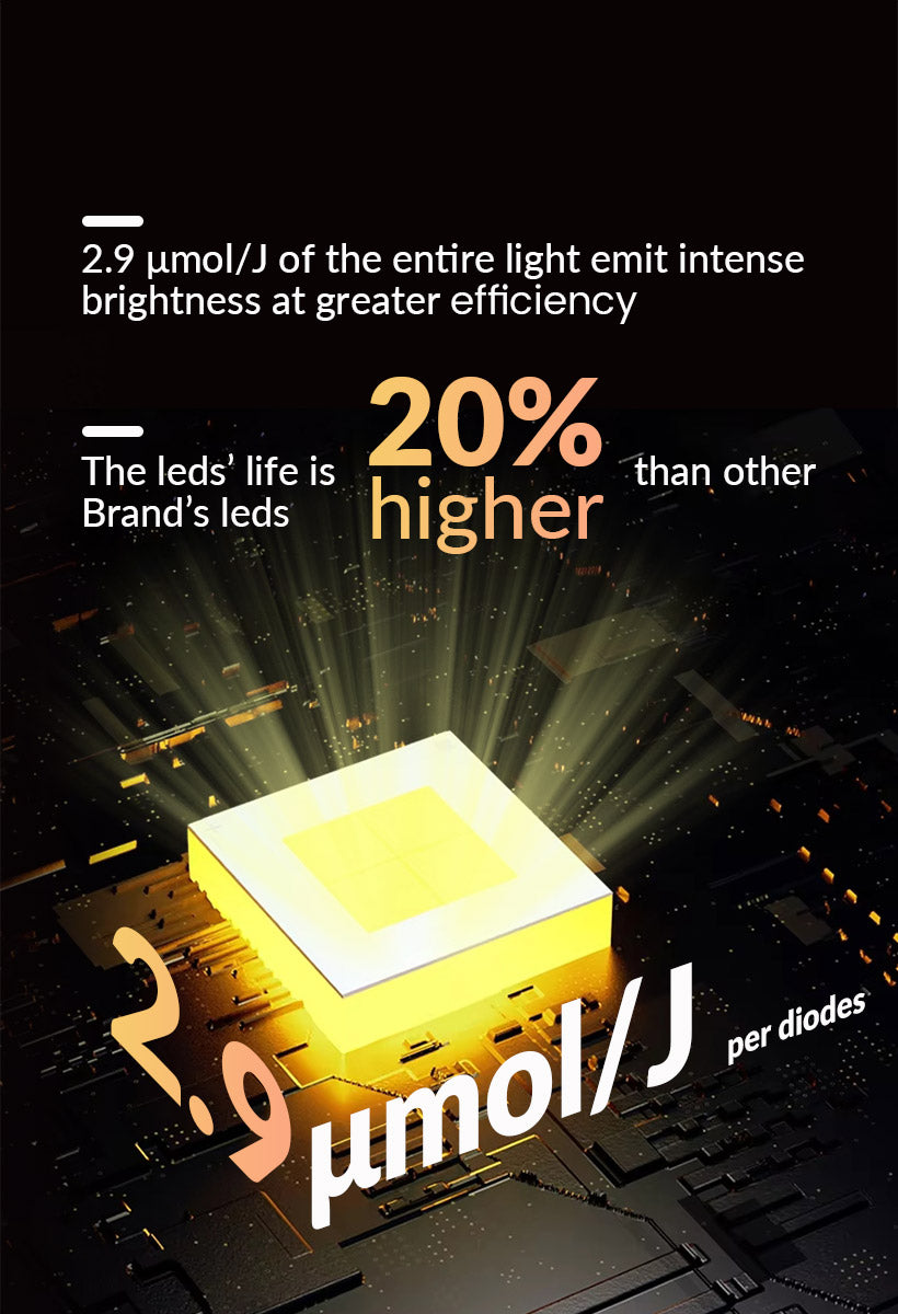 Unlock the full potential of your plants with the Smart-8 LED grow light. Engineered with premium Sosen drivers and advanced diodes, it delivers exceptional PPFD across a full spectrum. The easy-to-read LCD display provides instant access to crucial settings like timing, power, dimming, and spectrum. With built-in knobs, you can adjust light intensity from 100% to 40% effortlessly, and customize light cycles from 12 to 22 hours. The Sunrise and Sunset feature ensures gradual light transitions for healthier growth.