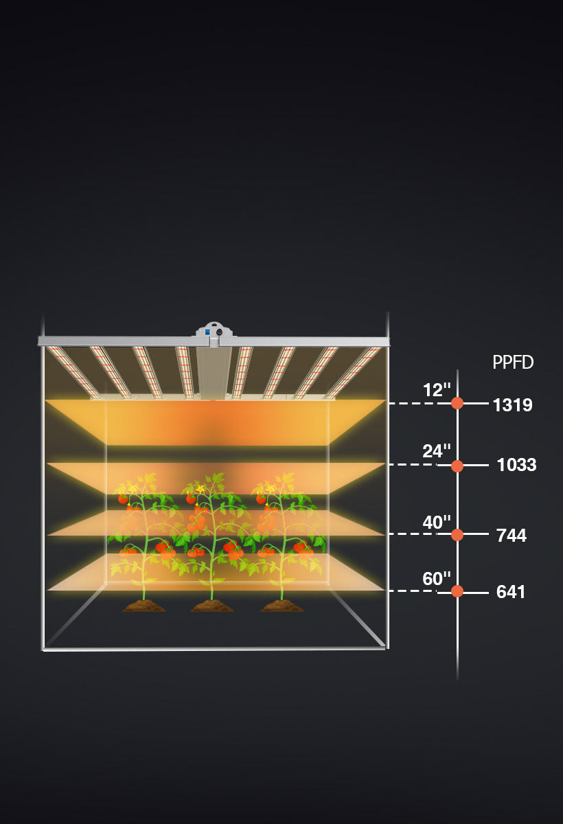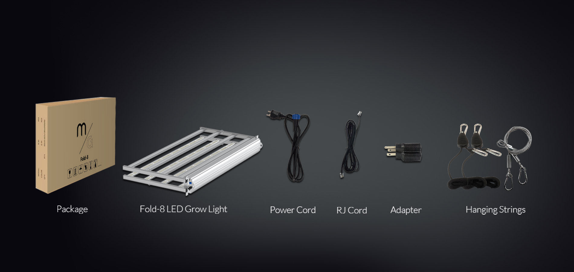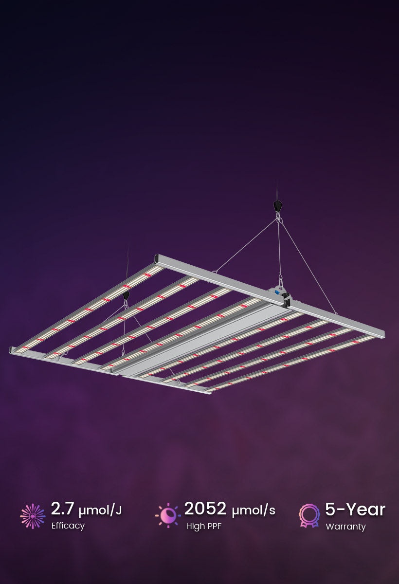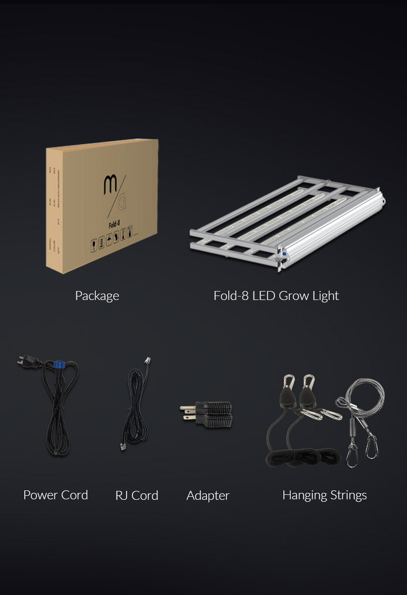 The Fold-8 LED grow light offers full-spectrum coverage for a 4x4 ft area, supporting all stages of plant growth from veg to flower. With eight lighting bars for even light distribution and high efficacy of 2.7 µmol/J, it’s perfect for both personal and commercial setups. The light is dimmable and delivers optimal PPFD to boost plant yield. When combined with a 4x4 grow tent, this setup maximizes efficiency, providing a controlled environment for healthy growth and high yields, making it ideal for all growers.
