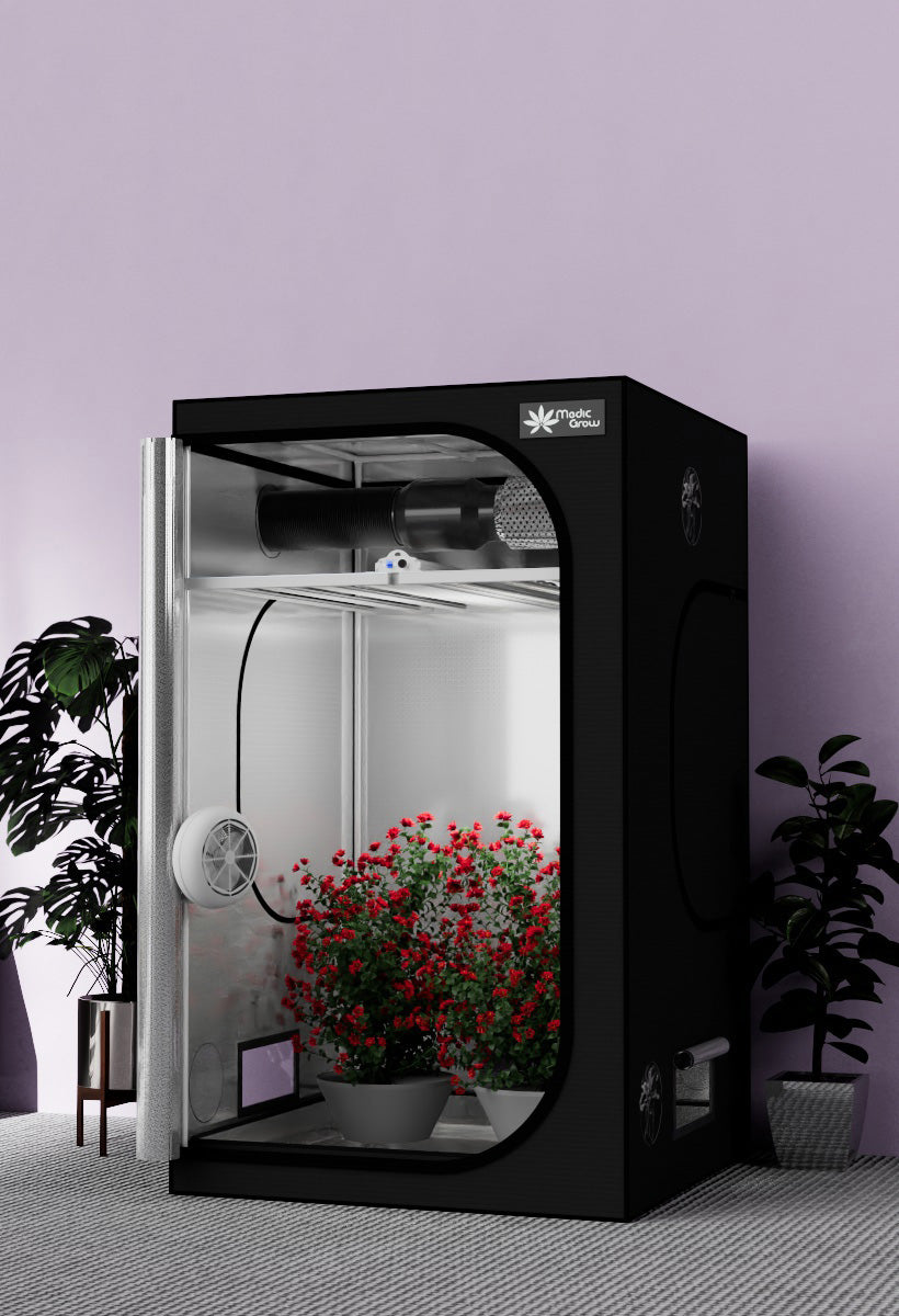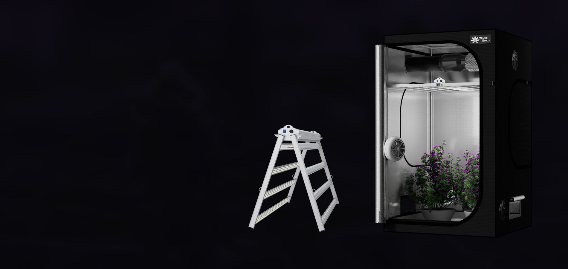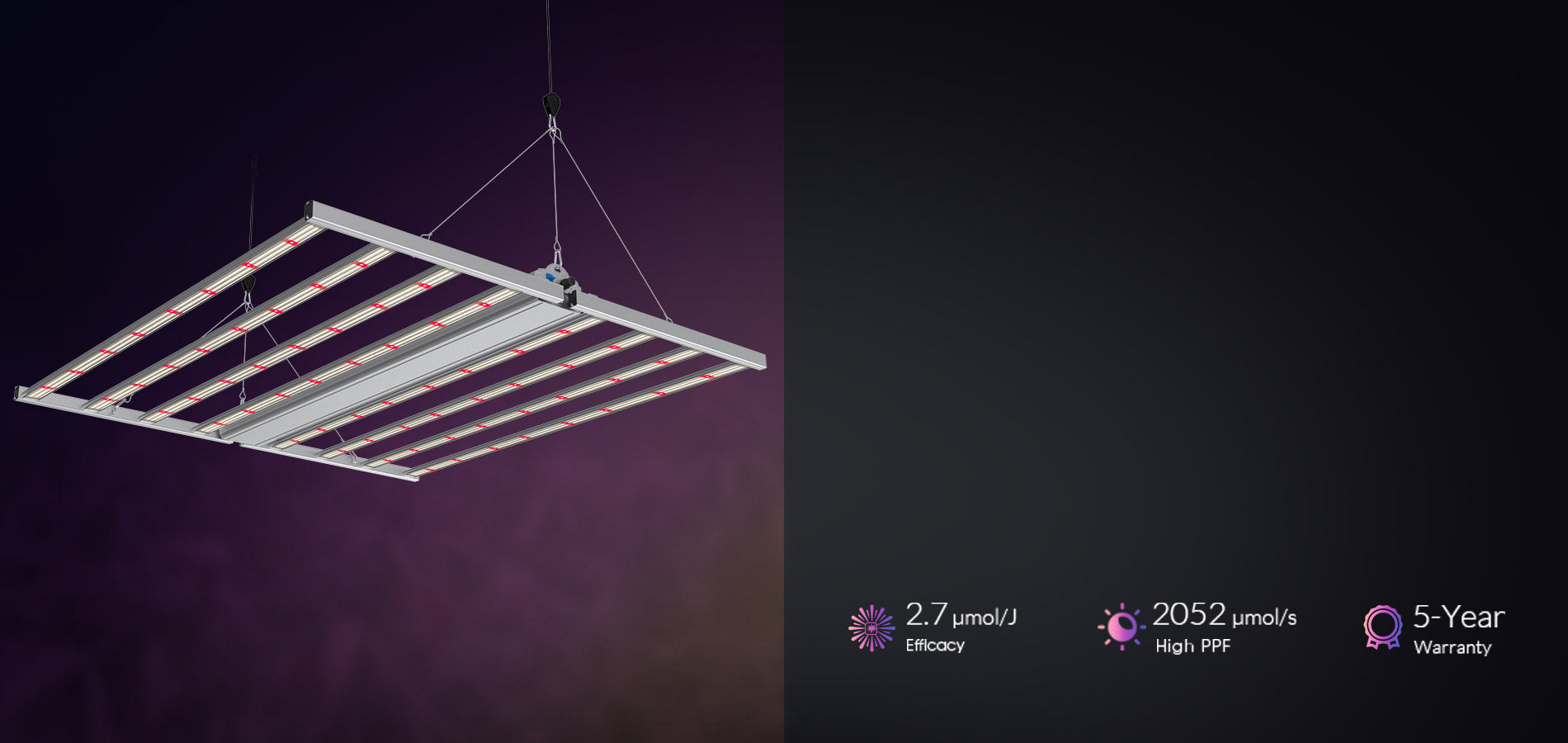 The Fold-8 LED grow light offers full-spectrum coverage for a 4x4 ft area, supporting all stages of plant growth from veg to flower. With eight lighting bars for even light distribution and high efficacy of 2.7 µmol/J, it’s perfect for both personal and commercial setups. The light is dimmable and delivers optimal PPFD to boost plant yield. When combined with a 4x4 grow tent, this setup maximizes efficiency, providing a controlled environment for healthy growth and high yields, making it ideal for all growers.