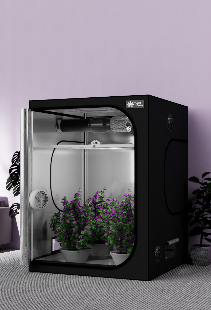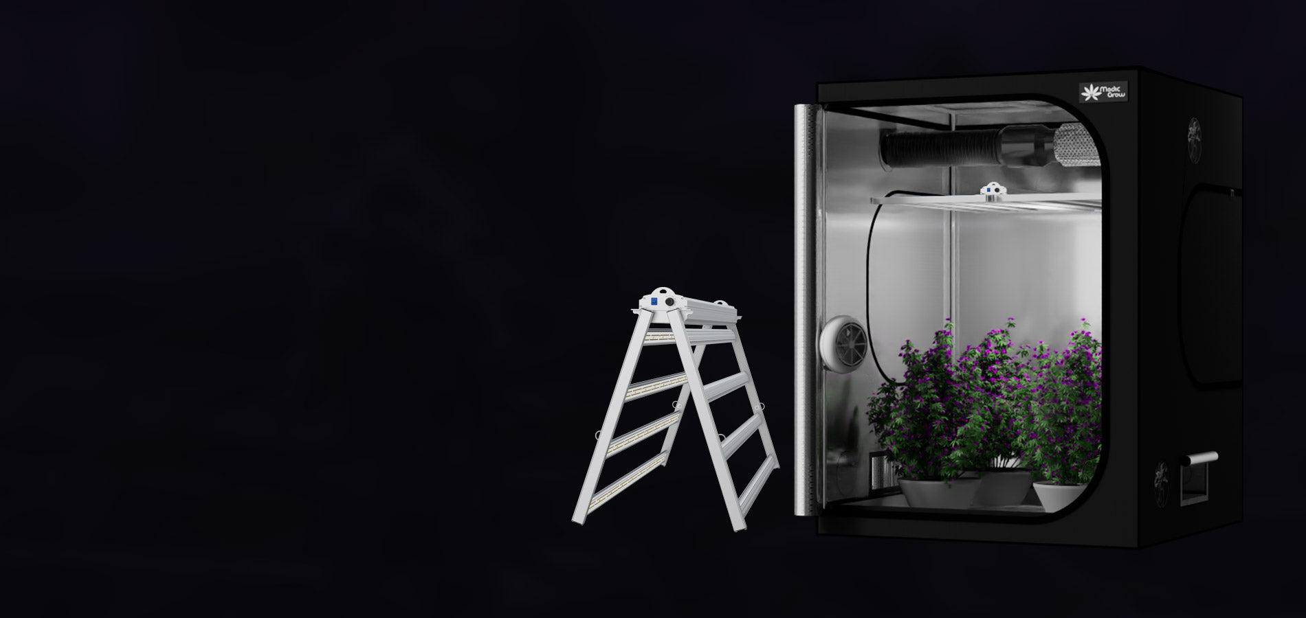 The Fold-8 LED grow light offers full-spectrum coverage for a 5x5 ft area, supporting all stages of plant growth from veg to flower. With eight lighting bars for even light distribution and high efficacy of 2.7 µmol/J, it’s perfect for both personal and commercial setups. The light is dimmable and delivers optimal PPFD to boost plant yield. When combined with a 5x5 grow tent, this setup maximizes efficiency, providing a controlled environment for healthy growth and high yields, making it ideal for all growers.