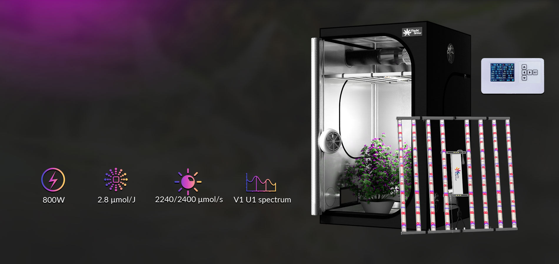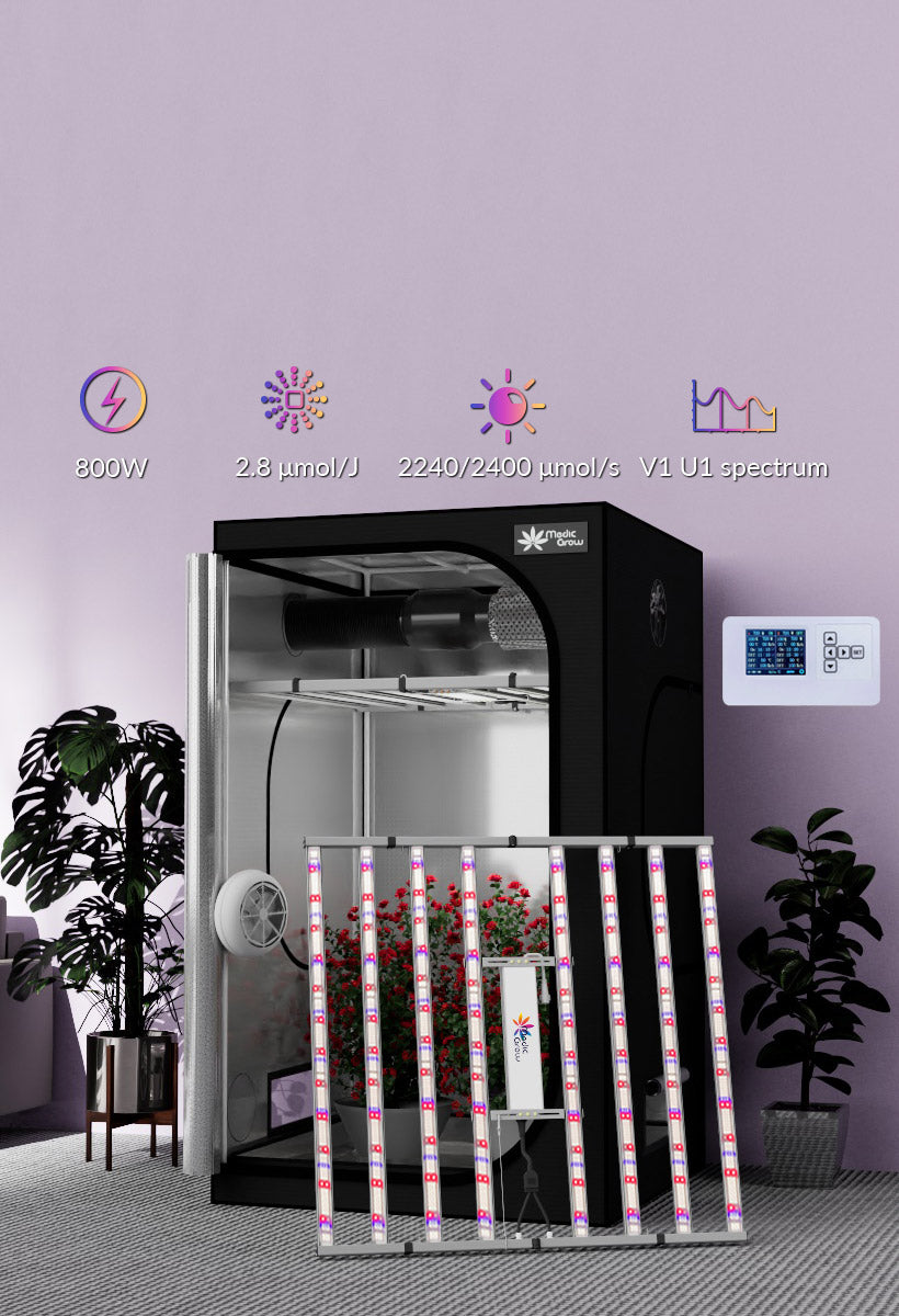 The Fold-800 Grow Light features the V1 spectrum, delivering an impressive efficacy of 2.8 μmol/J. When combined with the 4x4 grow tent, it ensures that your plants receive the maximum possible light for photosynthesis, promoting healthier and more robust growth.