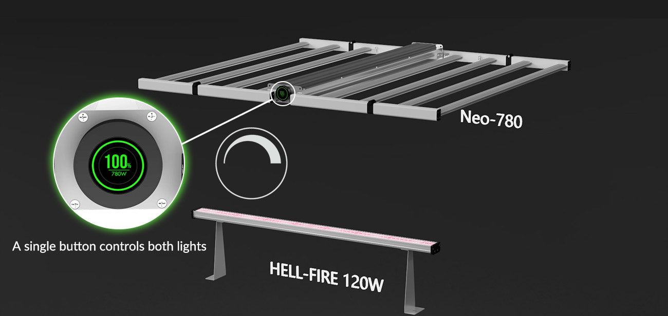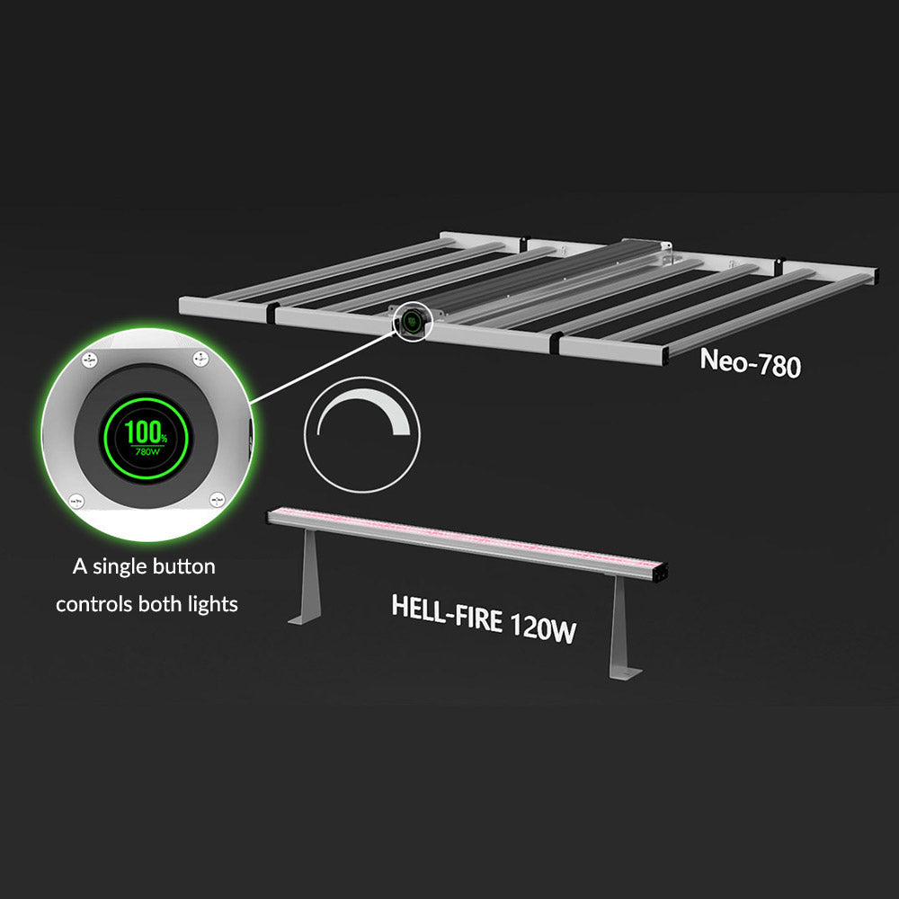 Offers rotary knob dimming, WiFi dimming via the NEO-780, and external 0–10V controller dimming—adaptable to any grow setup.