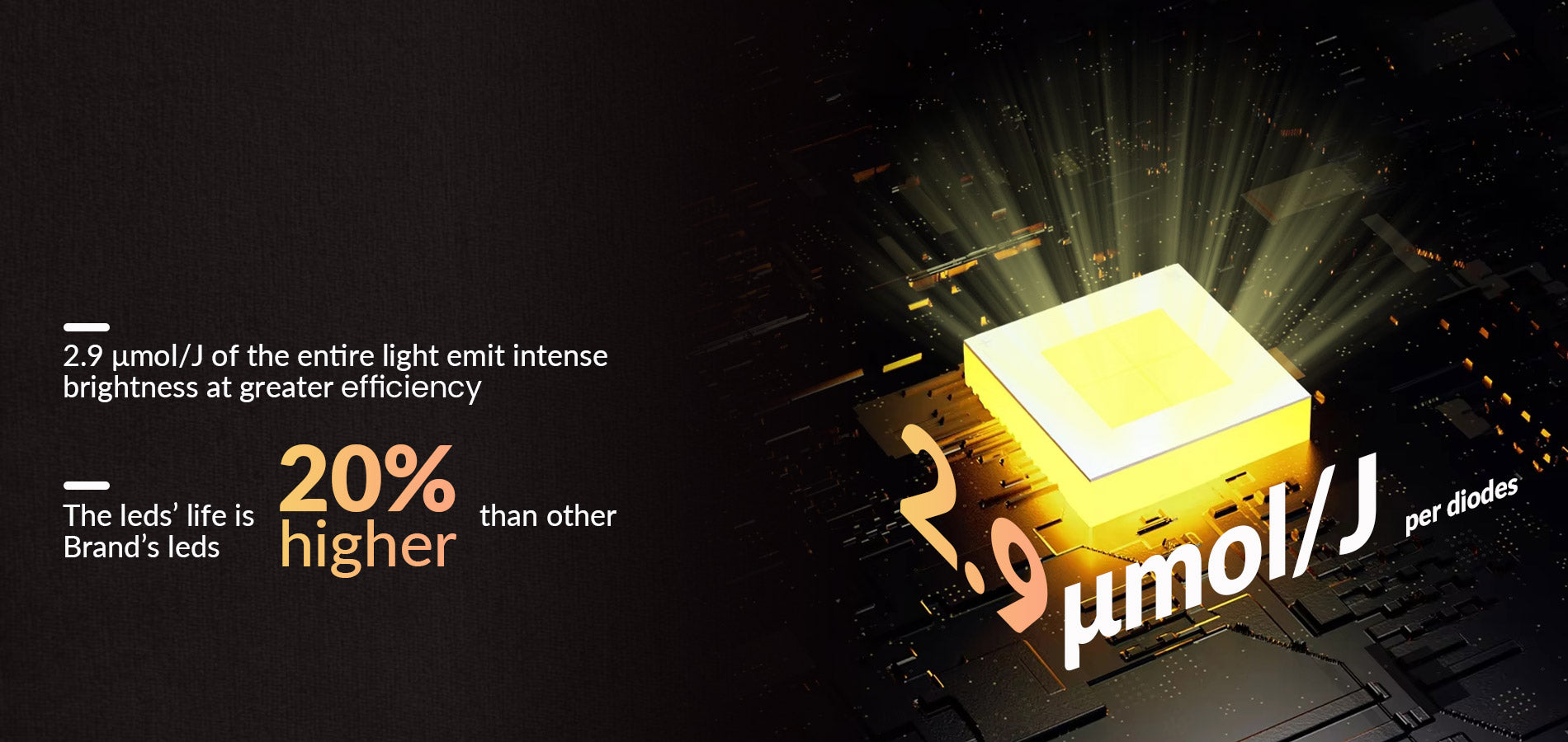 • Multi-Function Smart Display: Integrated timer and LCD for precise control of light intensity, schedules, spectrum, and PPF readings.