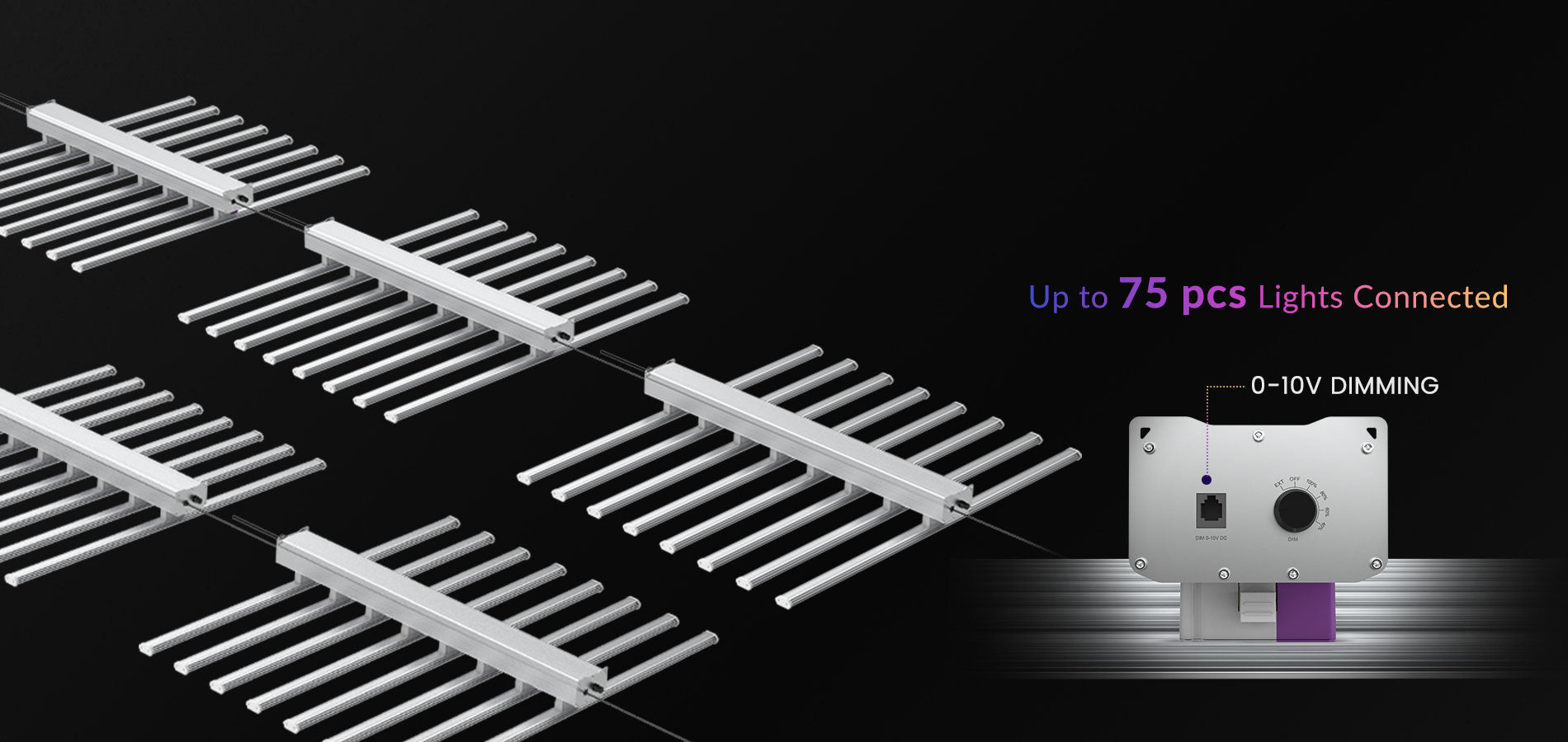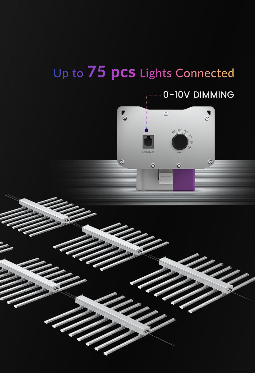 如果您询问的是使用信号线进行菊花链连接,我们的大多数灯都可以通过 RJ-11/RJ-12 线进行菊花链连接。但就 Smart 8/Spectrum X 而言,它是为不想购买额外控制器的家庭种植者设计的,这两款灯都在灯具中内置了控制系统,因此不建议将这两款灯进行菊花链连接。